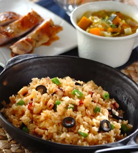 ゆでタコ足をお米と一緒に炊いた、洋風の炊き込みご飯です。