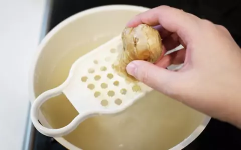 4. 生姜もすりおろして加えます。香りも活かすため、皮は剥かずにすりおろします。