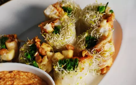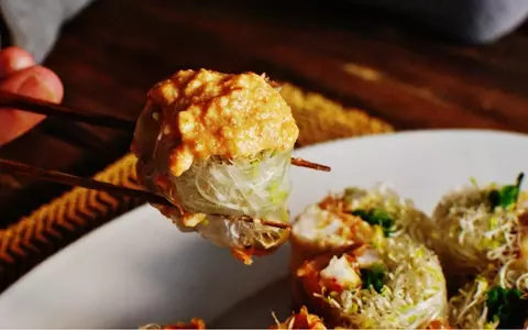 はんぺんの食感が楽しい生春巻き。野菜をたくさん巻けば、ボリュームも満点で大満足。豆腐のタレをたっぷりつけていただこう!
