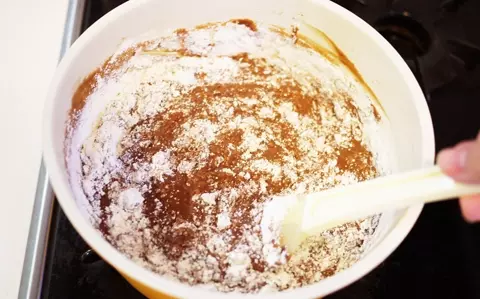 6.チョコが溶けたら生クリームを加えてよく混ぜます。(綺麗に混ざらない場合は少しだけ弱火で再加熱して火をすぐ止めて下さい)混ざったら、粗熱をとります。
