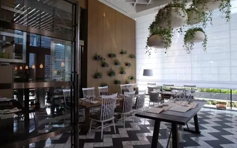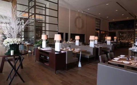 モーニングビュッフェをいただける1階の「オールデイダイニング−グランド キッチン」は、目の前に和田倉濠の緑が広がる、開放的なレストラン。朝のまぶしい光がさんさんと差し込み、まるでどこか別の国に来たかのよう!