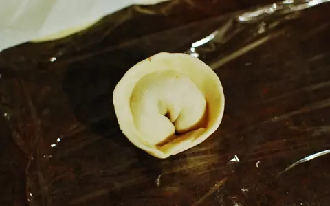 4. 両端に少し水をつけ、端同士をくっつけて写真のような形にする。