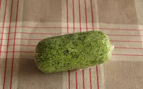 ラップに包み、棒状にまとめます。すぐに使い切る場合は冷蔵保存。それ以外はこのまま冷凍保存しましょう。必要な分だけ端から切って使います。