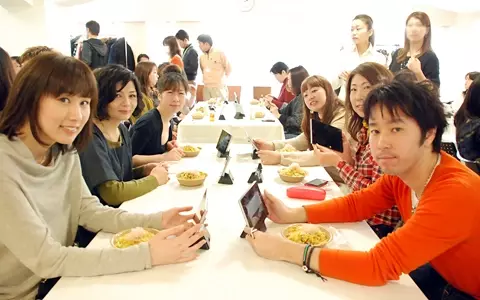 会場には男女50名ほどの来場者が集まっていた。テーブルには防水機能付きの「MEDIAS TAB N-06D」が置かれており、皆それを見ながらレクチャーを受けたり、写真を撮ったりしており、知らない同士ながらもメディアスタブを通じ、和気あいあいとした雰囲気だった。