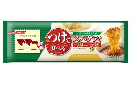そのマ・マー スパゲティブランドから、2013年2月20日に新たなスパゲティが発売! その名も、「マ・マー つけて食べるスパゲティ 1.4mm」。おそばやそうめんのように、茹でて水でしめた麺をソースにつけて食べるスパゲティです。