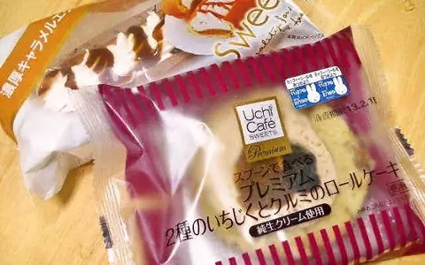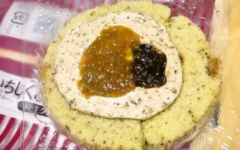 まず1つめはローソンの「プレミアム2種のいちじくとクルミのロールケーキ(¥250)」。ローソンでおなじみのスプーンで食べるロールケーキの新作だ。