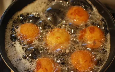 7. 低めの中温の油で揚げる。しっかり余分な油を切って完成!