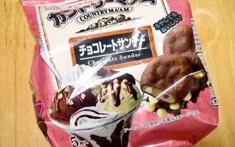 まず「不二家 カントリーマアム チョコレートサンデー」。定番クッキー、カントリーマアムの新味だ。