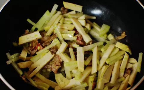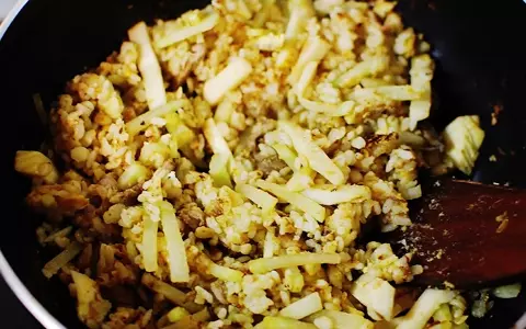 3. 筍、大根を入れざっと混ぜたら酒を入れて炒める。