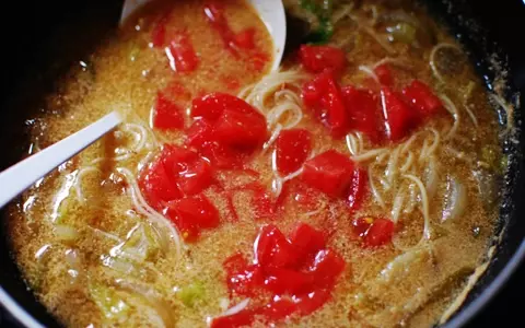 2.☆を溶かし入れ混ぜ、素麺を入れて素麺が柔らかくなるまで煮る。
