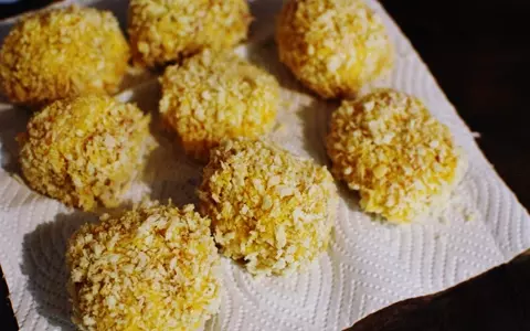 このフライは冷めても美味しいが、食べる直前にトースターで軽く温めて出してもらうと良い。ソース、醤油、マヨネーズなどお好みでつけて食べて!