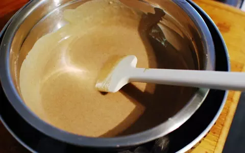 4. 3をボウルに入れ、別の氷をはったボウルに重ねて混ぜながら冷やす。2~3分ほど混ぜているとトロッと重たくなってくるので、そうなればOK。