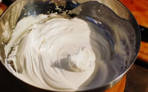 6. 4に5のメレンゲを入れてゴムベラで滑らかになるまで混ぜる。容器に入れてラップをして冷蔵庫で冷やし固める。