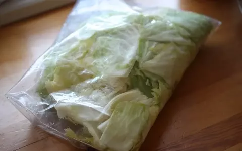 保存袋に、キャベツをちぎり入れ適量の塩を入れてよくもみます。そのまま冷蔵庫で保存。急いでいる時は重いお鍋などを上に乗せると早くしんなりします。