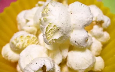続いてカフェモカ味。ポップコーンの塩味とカフェモカの組合わせは果たして…と思ったが、意外にも塩味はほとんど感じられなく、カフェモカのほろ苦さと甘さが感じられる大人向けなスイーツポップコーンに変身だ。