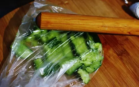 作り方1.きゅうりは3cm幅くらいに切ってポリ袋にいれ、麺棒などで叩いて割る。そこに◎を入れて手でよく揉み、5分ほど置いておく。