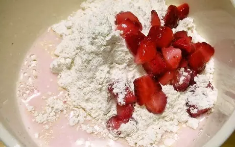 作り方は簡単! 通常のホットケーキミックスをつかって、ホットケーキを作る過程で、牛乳の代わりにいちごオレを使い、適量のストロベリーと一緒に混ぜるだけ。あとは普通のホットケーキと同じく焼いていけばOK。