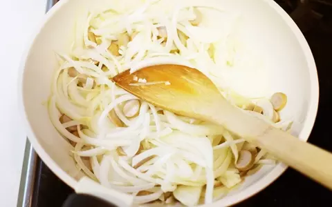 4.フライパンにバターを溶かし、ニンニクを入れて弱火で炒め、香りを出します。香りが出てきたら玉ねぎ、ウインナーを全て加えて中火で炒めます。タコの足が開いたら、タコウインナーは取り出しておきます。