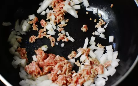 1. フライパンに★を入れ、中火で炒める。玉ねぎが透き通ってきたらひき肉を入れ、塩、胡椒を少々して炒める。