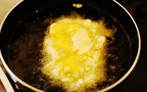 4.鶏天を揚げる。ボウルに△をいれ泡だて器でざっと混ぜ、よく混ぜ合わせた◎をいれてざっと混ぜる。1の鶏肉の余分な水分を切って衣にくぐらせ、中温の油で4~5分ほど揚げ、いったん取り出して1分半ほど休ませる。揚げ油の温度をやや上げ、再び1分ほど揚げる。