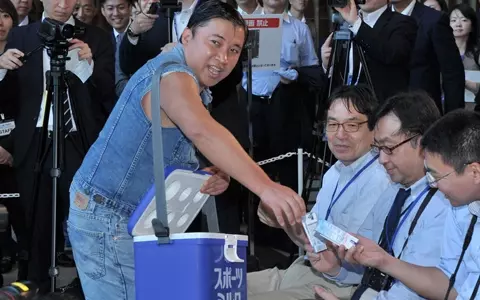 「やったぜ~」と嬉しそうなスギちゃんですが、それらの商品はきちんと回収され、スギちゃんから吉田選手へ、ひとり目となるサンプリングが行われました。