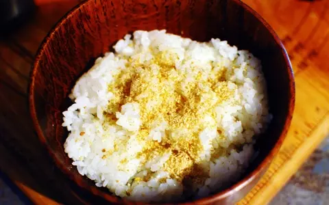 2.どんぶりにご飯を入れ、上に白すりゴマをかける。