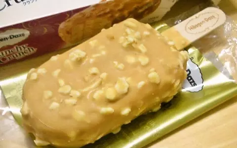 キャラメルの甘さにマカデミアナッツの香ばしさが加わって味のバランスが良くまとまっている。表面のキャラメルチョコやナッツのカリカリとした食感も楽しめるアイスクリームバーとなっている。