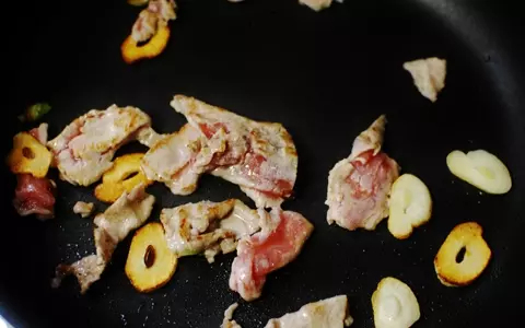 1. フライパンに★を入れ弱火にかけ、香りがたったら豚肉を広げて入れ、塩・胡椒を少々して炒める。