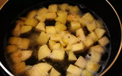 2. 鍋に◎を入れ、きび砂糖が溶けるまで煮立たせたら1の桃を入れ、弱火で4~5分ほど煮る。煮たらコンロからはずしておく。