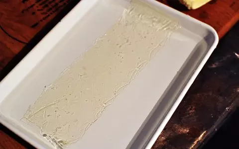 3. 粗熱をとっている間に、板ゼラチンをたっぷりの水に1分~2分ほど浸してやわらかくする。