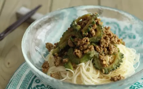 旬の味覚を簡単レシピで! ~カレー風味のゴーヤ肉味噌そうめん~