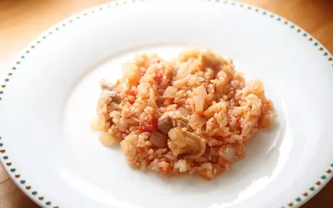 トマトソースは残りのトマト缶を耐熱容器に入れ、玉ねぎのみじん切り、塩コショウをしたらラップをせずに電子レンジで3分ほど加熱します。お好みでバジルやオレガノなど、ハーブを入れても。
