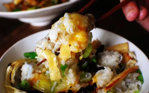 おすすめ朝レシピ、油揚げとちりめんの卵かけご飯