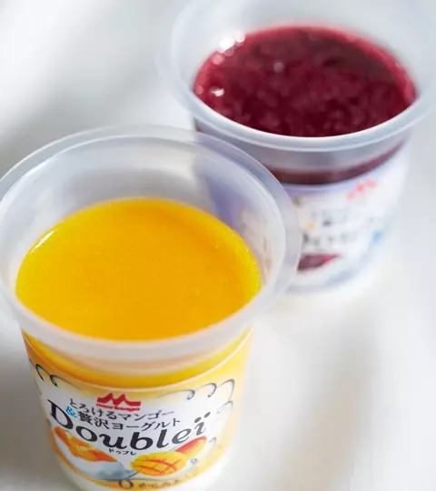 仕事で疲れて帰ってきた夜、コンビニに寄ってプチ贅沢をしたいという人は多いかも。そこで「Doublei(ドゥブレ)マンゴー」と「Doublei(ドゥブレ)ブルーベリー」を買えば、ひとくち食べただけで心も体も“うっとり”。