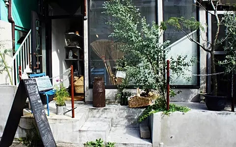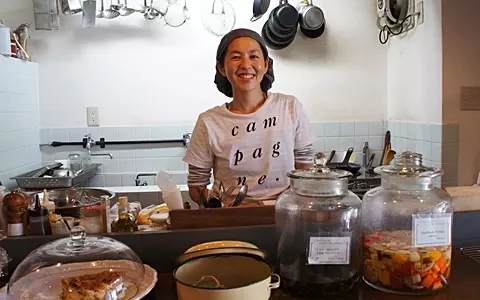 一見雑貨屋さん風で通り過ぎてしまいそうですが、階段を上ったらすぐ入口、シェフの奈緒美さんが「こんにちは~」と、大きな笑顔で迎えてくれます。