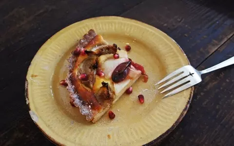 セザンヌのような絵のような色合いが美しい、いちじく、プラム、洋ナシのタルト。