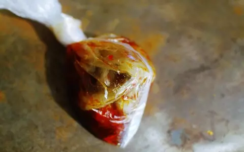 3.ポリ袋に残った漬け汁にかたくり粉を入れて手で揉んで混ぜておく。