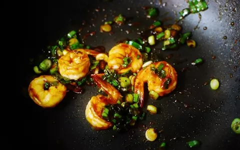 4.2の海老に火が通ったら3を入れて手早く絡める。火を止めて細ネギを入れてざっと混ぜて、取り出しておく。