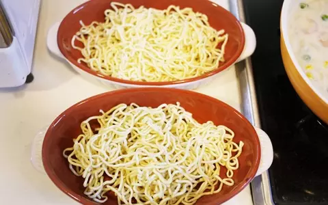 インスタント麺が大変身、なんちゃってスパゲティグラタン