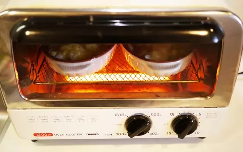 8. 余熱しておいた1200wのオーブントースターで7~9分程焼きます。