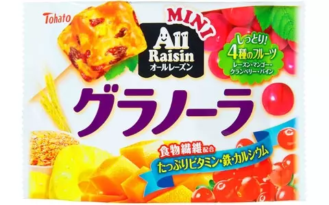 これからは「ミニオールレーズングラノーラ」や「オールレーズングラノーラ」を常備して、小腹がすいたときにも、気分転換にも、食事の時間がないときにも、ぜひフル活用して。