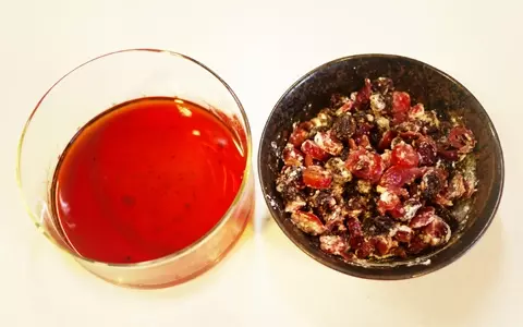 3.ラム酒漬けドライフルーツは使う直前に水気をきり、分量内のホットケーキミックス(大さじ1杯程度)をまぶしておきます。(漬けた後のラム酒は後で使うので捨てないで!)残りのホットケーキミックスはふるいにかけておきます。クルミは冷めたら包丁で刻むか叩いて砕きます。