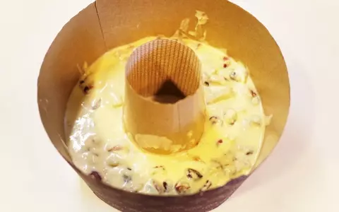 8.型に流します。流した後は30cmくらいの高さから台に数回落とし、余分な気泡を抜きます。予熱しておいた160℃のオーブンで40~45分焼きます。(※焼き時間は目安です。ご家庭のオーブンによって多少調節してください)