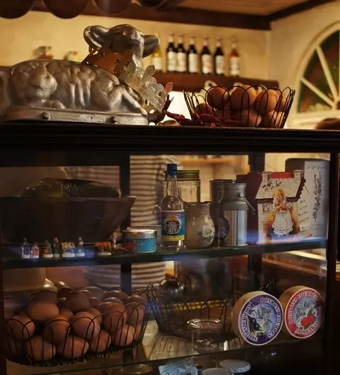 クレープリーに来たらフランス流に、シードルをいただきます。シードルとはワイン造りに適さなかったフランスの北の土地で栽培しやすいりんごで作った発泡酒で、りんごの香りが残るシードルはガレットと好相性です。グリーンサラダが入ったかわいいアンティーク風のボウルなどブロカントの雑貨は、2階の雑貨屋さんで購入できます。