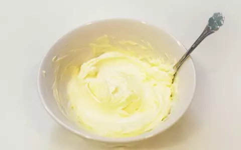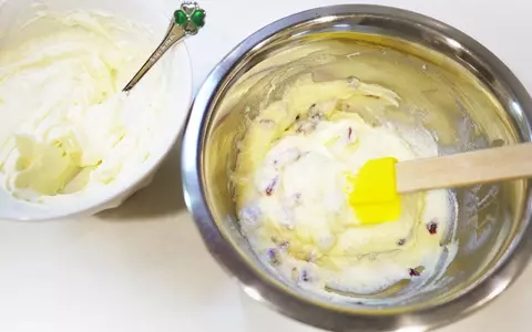2. クリームチーズが適温になったら、砂糖を加えてよく練り混ぜます。ダマがなかなか消えなかったり、硬いと感じる場合はレンジで少し温めて下さい。砂糖が溶けて、滑らかなクリーム状になればOK。