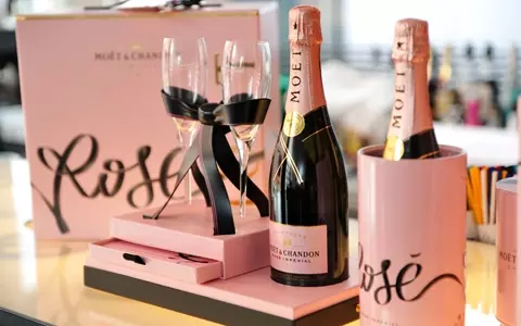 それは、「モエ ロゼ ブラックタイ コレクション」。春が訪れるこれからの季節にぴったりな琥珀色の光をたたえた美しいきらめきを放つピンクのロゼと、愛する人びとの絆を強めるリボンのようにデザインされたブラックタイが、とてもロマンチックなコレクションです。