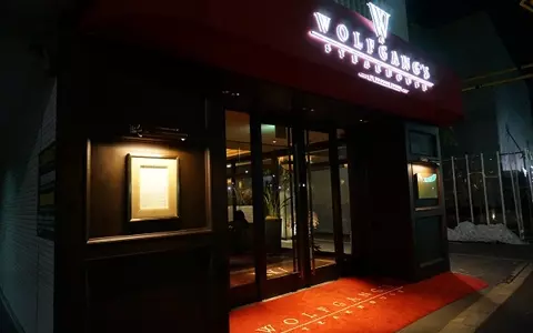 肉好きの間では名店として知れ渡る、1887年創業のステーキハウス「ピーター・ルーガー」でヘッドウェイターとして41年間活躍したウルフギャング・ズウィナー氏が、2004年にニューヨークでオープンしたのがはじまり。場所は六本木駅から徒歩8分ほど。外苑東通りから鳥居坂方面に向かう道に面しており、ディープレッドのハザードが浮かび上がる。