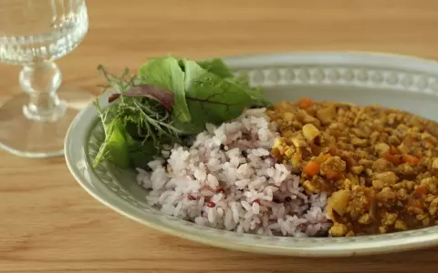 そんな日は、ひき肉の代わりに水切りした豆腐でキーマカレーはいかがでしょうか。きざんだ野菜もたっぷり入ったヘルシーなカレーです。