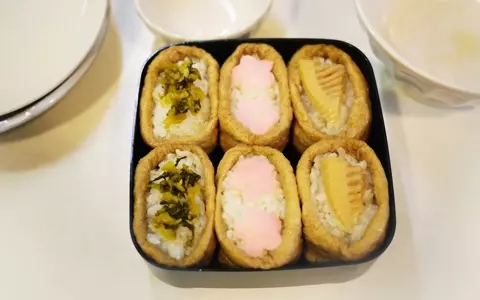 9. 3種類それぞれ2個ずつできたら、箱に詰めて完成です。時間がたつと油揚げの水分がご飯に移ってしまうので、早めに食べきるのがおすすめ。