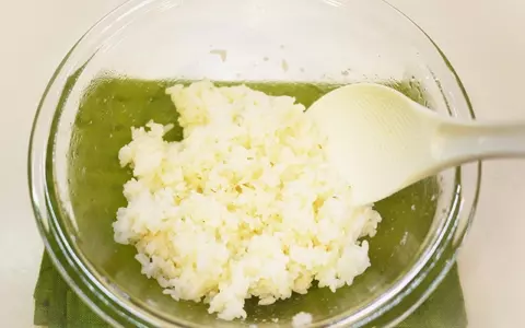 6. ご飯は大きめのボールに入れ、ラップをせずにレンジでしっかり熱くなるまで温めます。熱々になったら、1の寿司酢と白胡麻をまわしかけ、しゃもじで切るように手早く混ぜます。全体に寿司酢がまわったら、ラップをせずにそのまま粗熱を取ります。(5の油揚げを煮る工程と並行して、寿司飯も作れると時間短縮になります)
